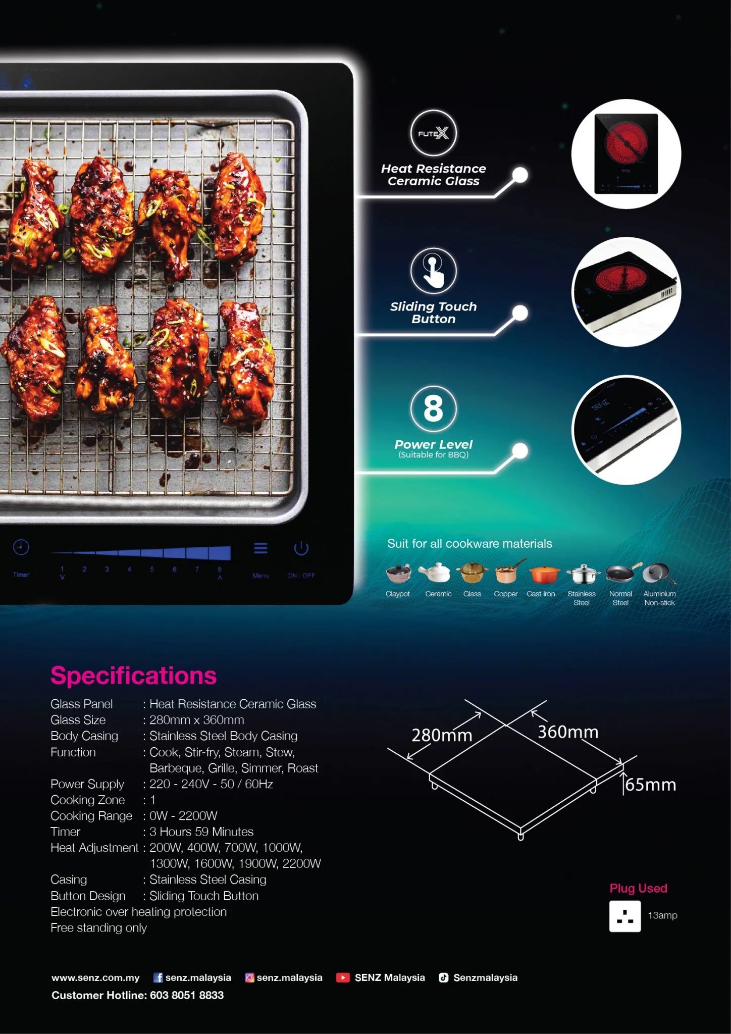 - Glass Panel : Futex Glass, Heat Resistant Ceramic Glass