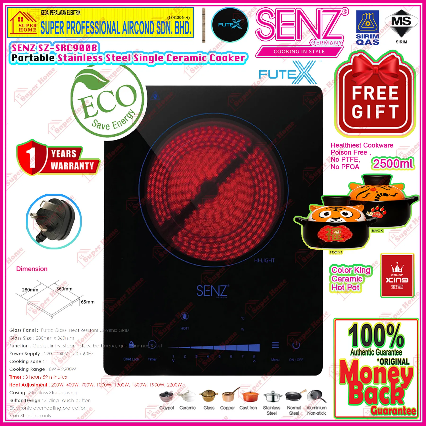 - 1 year Warranty by Senz Malaysia