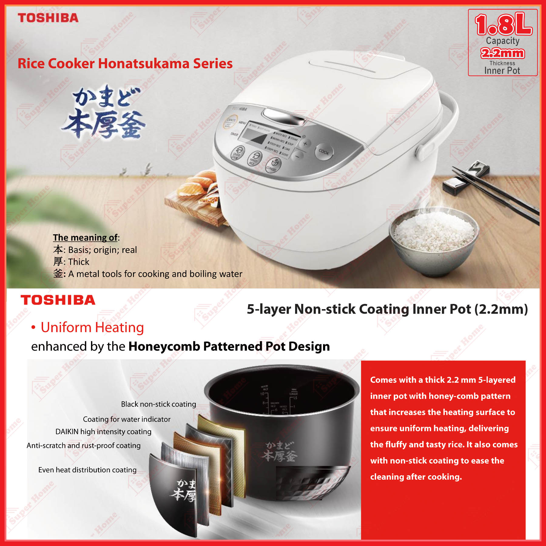 5-layer Inner Pot with Honey-comb Pattern