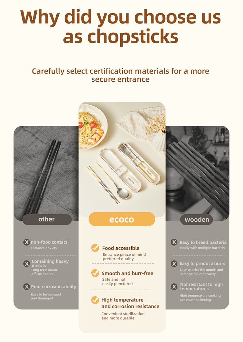 This ECOCO cutlery set is designed for those who value hygiene, portability, and durability — perfect for daily use at work, school, or travel.