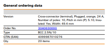 槟城,马六甲 - WEIDMUELLER 3040630000 BCC 2.5N/10 B-Series Push In Terminal Block