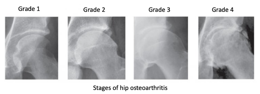 - 第4阶段(重度):软骨几乎完全丧失,导致骨与骨直接摩擦、慢性疼痛、关节畸形,并可能出现股骨头变形(髋关节“球”状结构破坏)。