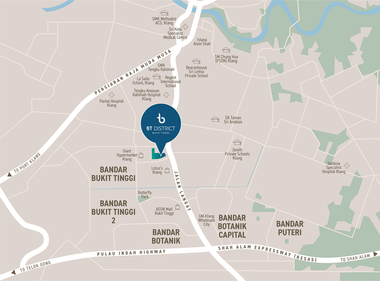 BT District enjoys a prime address in Bandar Bukit Tinggi, one of Klang’s most established and rapidly expanding townships.