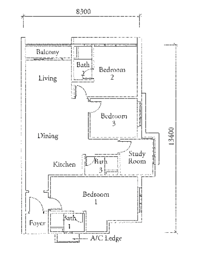 | Type C — 2+1 Bed 2 Bath —1,054 sq.ft. | |