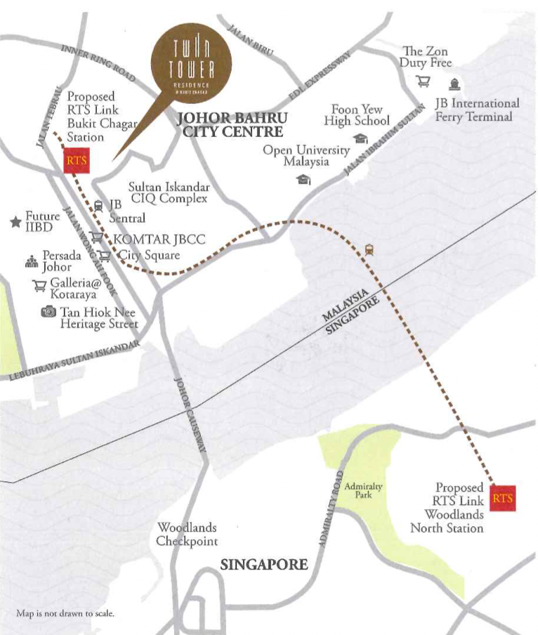 Twin Tower Residence @ Bukit Chagar is a freehold serviced apartment strategically located in Johor Bahru City Centre, within walking distance to the proposed Bukit Chagar RTS Station, offering seamless connectivity to Woodlands North, Singapore. Rising 41 storeys with only 458 exclusive units, this high-rise development delivers premium urban living with practical layouts ranging from studio to 3-bedroom units, complemented by comprehensive lifestyle facilities such as a swimming pool, gymnasium, jacuzzi, sauna, BBQ area, and leisure spaces. Positioned near CIQ, JB Sentral, Komtar JBCC, City Square, R&F Mall, and future Ibrahim International Business District, Twin Tower Residence stands out as a prime choice for buyers and investors seeking RTS-driven growth, strong rental demand, and long-term capital appreciation in the heart of Johor Bahru