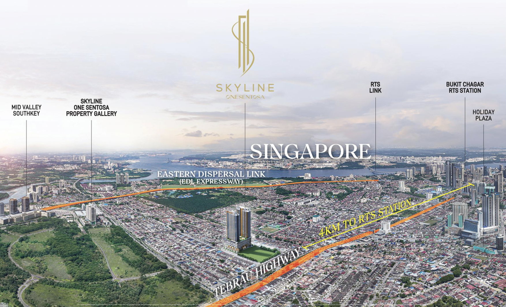 Skyline One Sentosa is a freehold serviced apartment development located in Taman Sentosa, Johor Bahru, offering a strategic balance between affordability, connectivity, and lifestyle convenience. Positioned just 4.4km from the RTS Bukit Chagar Station and less than 10 minutes’ drive to JB CIQ, this 60-storey landmark is ideal for Malaysians working in Singapore and investors targeting cross-border rental demand. With direct access via Tebrau Highway and proximity to key amenities such as KSL City Mall, Mid Valley Southkey, Columbia Asia Hospital, and major universities, Skyline One Sentosa stands out as a practical urban living and investment choice