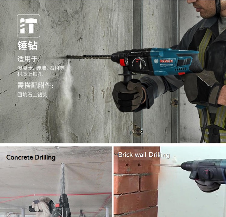 " Powerful 720 W motor and 2.0 J of impact energy for effective hammer drilling in concrete (up to 22-mm diameter)