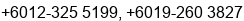 柔佛 Sky 019 771 5565 Chua 012 716 1461 Shi Rui 012 989 1461 Loh 012 568 1461 Vivianne 012 471 1461