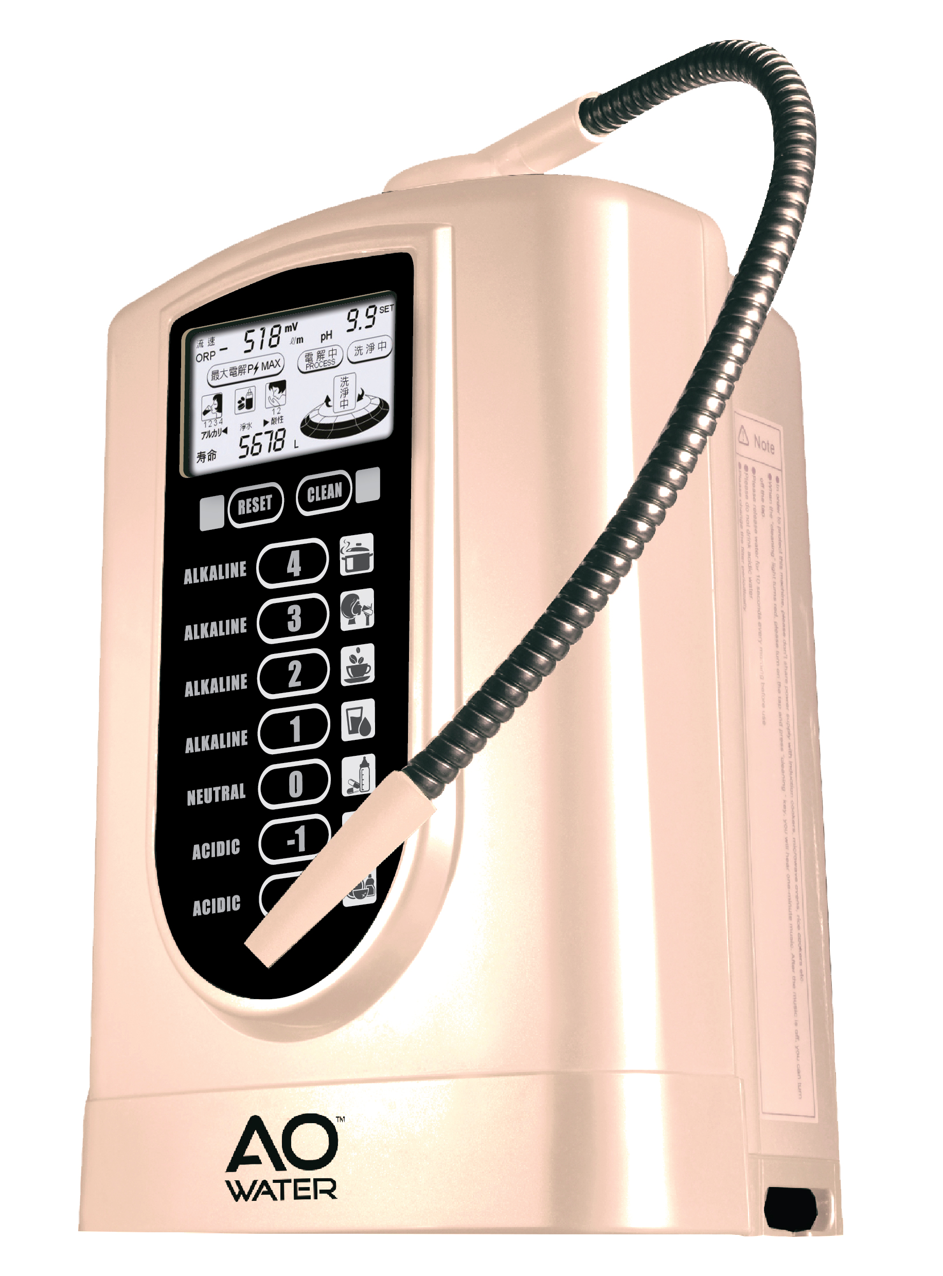 - Provides four levels of alkaline water, one level of purified water and two levels of acid water