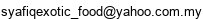 You are now browsing the page of SYAFIQ EXOTIC FOOD INDUSTRIES, this is a free listing provided by NEWPAGES, Malaysia No.1 Business Portal. SYAFIQ EXOTIC FOOD INDUSTRIES is located at 18, LOT NO. 1018, KAWASAN PERINDUSTRIAN MASAI V,