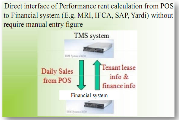 - Direct Interface of performance rent calculation from POS to financial system (e.g. MRI, IFCA, SAP and Yardi) without requiring manual figure entry.