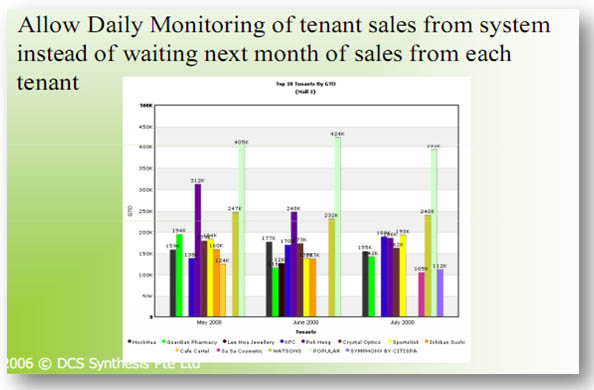 - Allows daily monitoring of tenant sales from system instead of waiting for the following month’s sales.