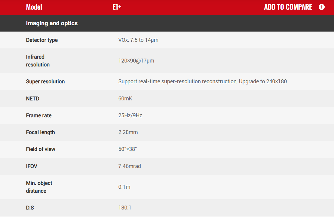 Based on the self-developed 12μm uncooled infrared detector, EasIR Series provides two configurations of 256×192 and 120×90 infrared resolution, which features a lower consumption with a smaller size.