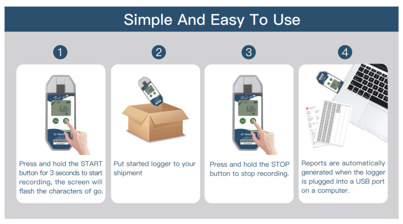 With automatic USB report generation, EN12830 compliance, and high-accuracy sensing, ET-TRACK-THD ensures full visibility of temperature and humidity conditions across cold chain logistics operations.