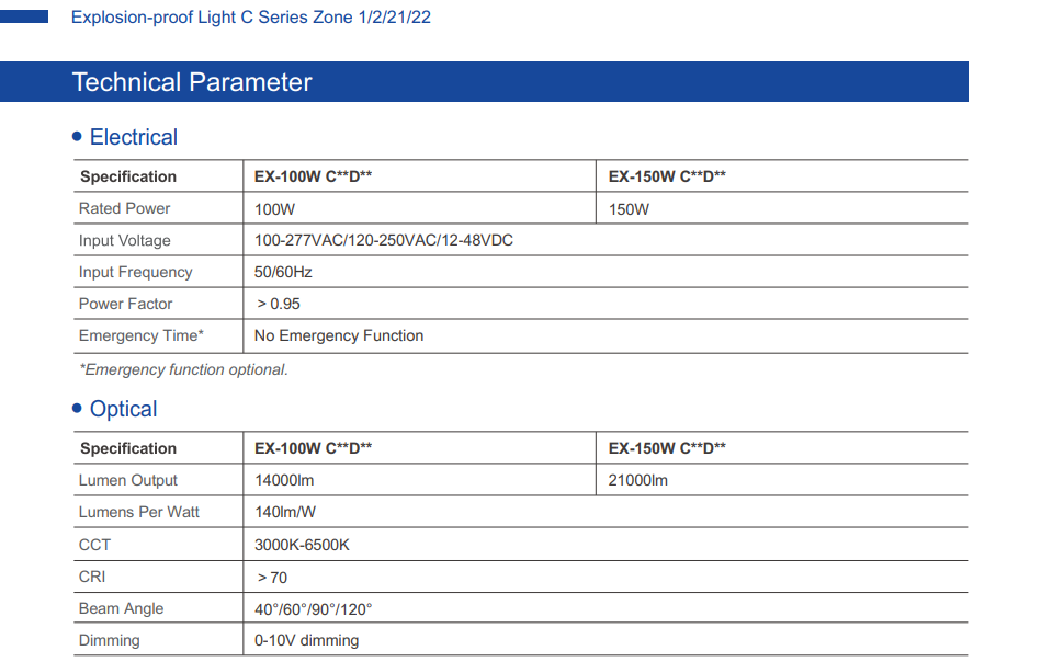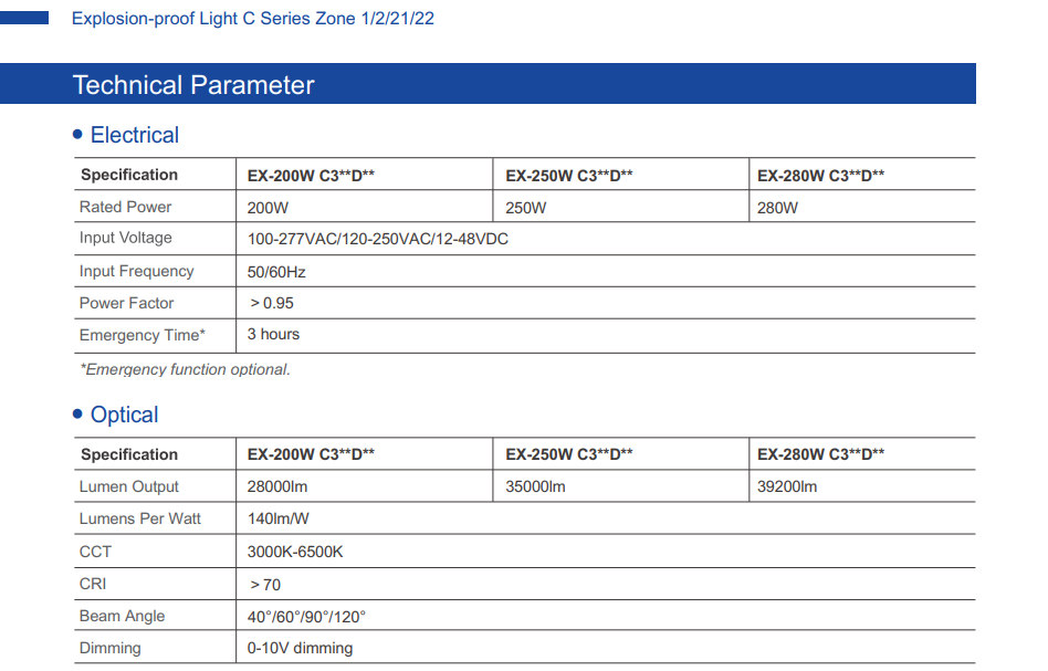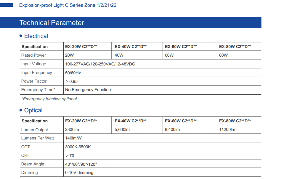 The VENAS EX C Series Dimmable LED Explosion Proof Hazardous Flameproof Anti-Spark Highbay AC100-277V IP66 Zone 1,2,21&22 CRI70 [C/C2/C3] [20W/40W/60W/80W] is a premium industrial lighting solution engineered for safety, durability, and superior performance in hazardous and explosive environments.