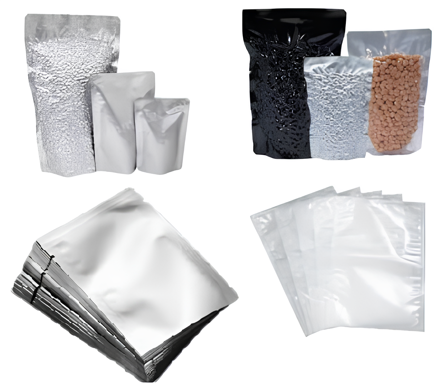 Vacuum bags, textured bags, nylon/poly bags depending on the machine.