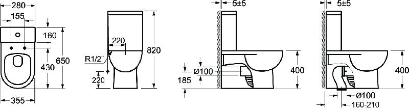 - S-TRAP : 160-210mm (convertible to s-trap)