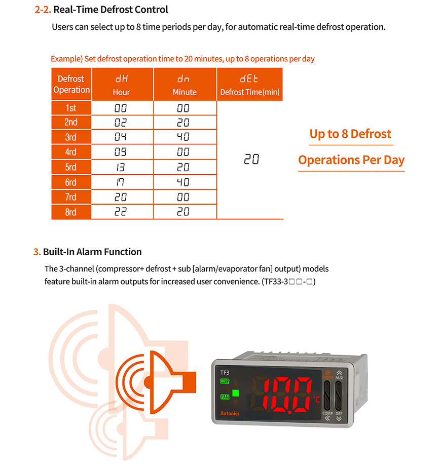 - RTC (Real Time Clock) function: night mode operation and real-time defrost control
