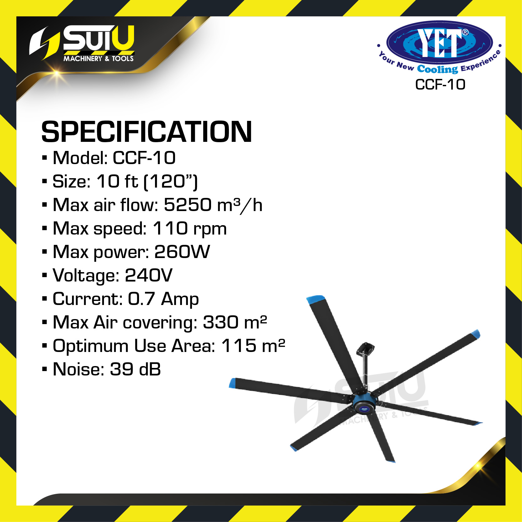 YET CCF-10 120" Commercial Ceiling HVLS Fan / Kipas HVLS Siling Komersial 260W