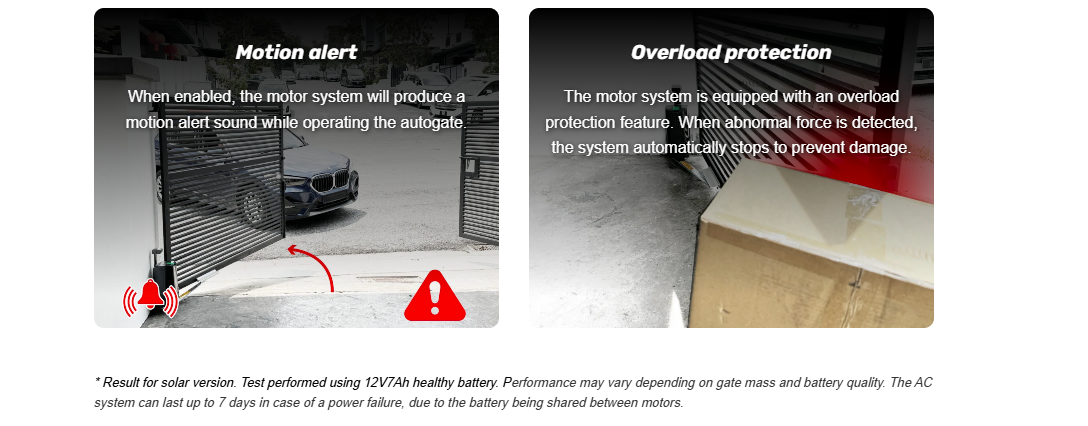 * Performance may vary due to loading condition. Tested under laboratory-controlled conditions using a 12V7Ah Battery (Healthy, Fully Charged) and a single motor