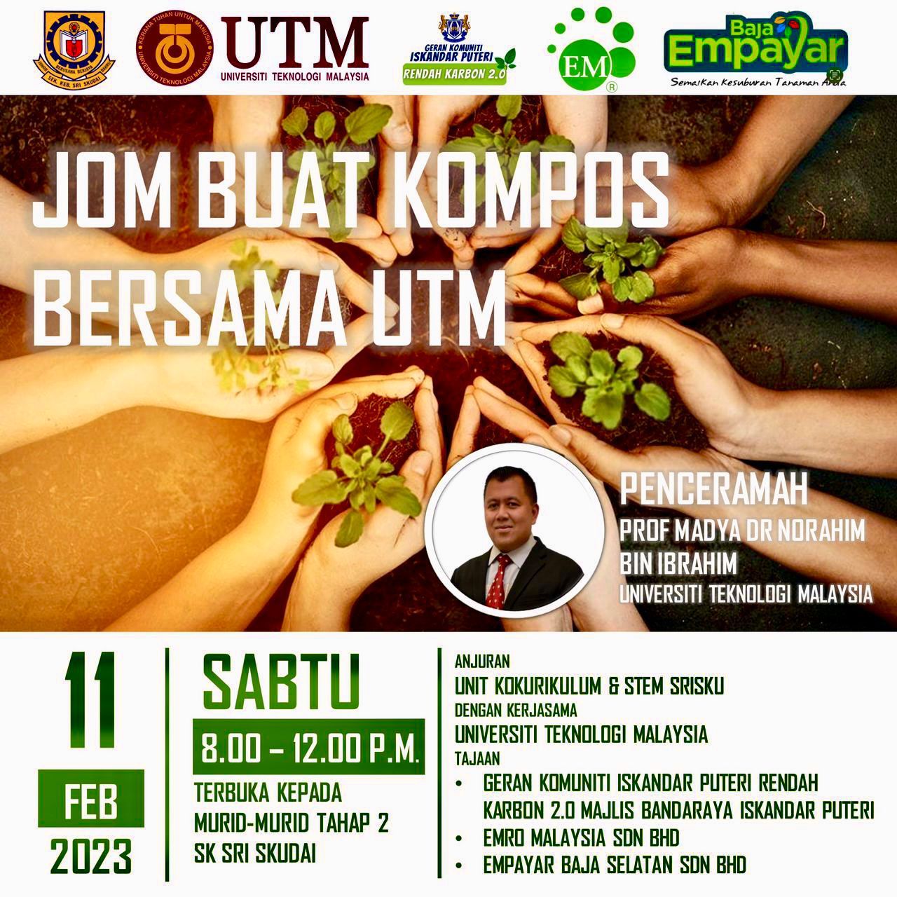 On 11 Feb 2023, 100 school students from SK Sri Skudai and 30 UTM students had a fun time with an EM composting workshop at SK Sri Skudai! )s