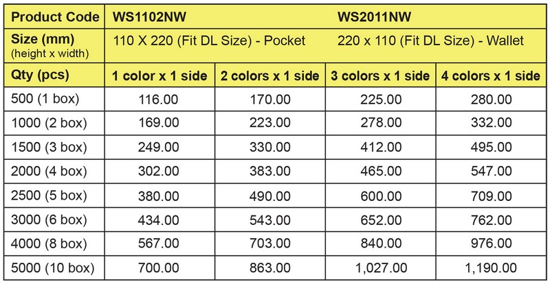 | WS2011NW | 220 x 110 (Fit DL Size) | Wallet | Butterfly | - | - | - | - | Visit Price |