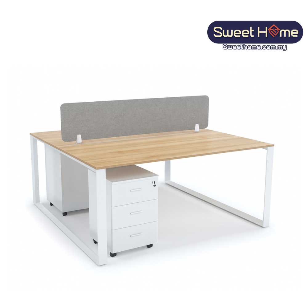 A practical 2-pax workstation designed for offices, co-working spaces, SMEs, study rooms, and home offices. Built with durable melamine tops, metal legs, and a frameless fabric partition for added privacy.