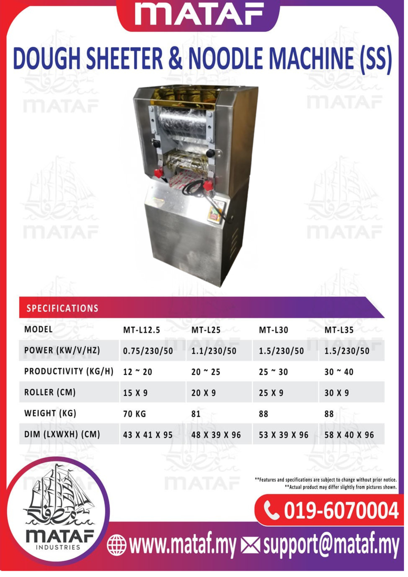 Negeri Sembilan,Seremban - Dough Sheeter & Noodle Machine MT-L30 (25-30kg/H)