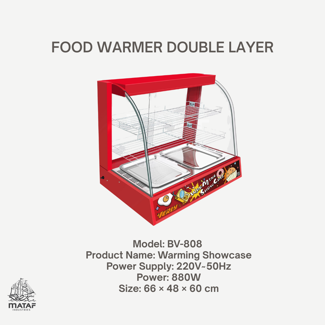 BV-808 ialah kabinet pemanas berkualiti tinggi yang direka untuk mengekalkan makanan sentiasa hangat, segar dan menarik dipandang. Dilengkapi dengan sistem pemanasan 880W serta bekalan kuasa 220V~50Hz, ia memastikan suhu sekata di seluruh ruang pameran.
