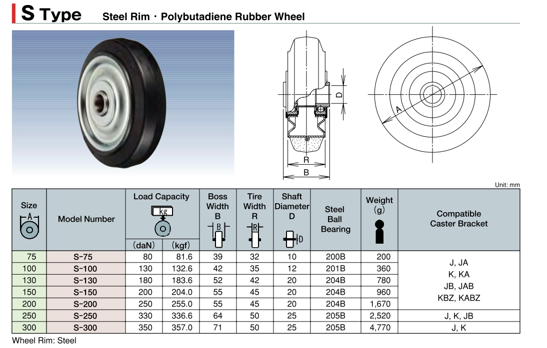 “UKAI” MEDIUM HEAVY DUTY PRESSED RUBBER WHEEL (BALL BEARING)