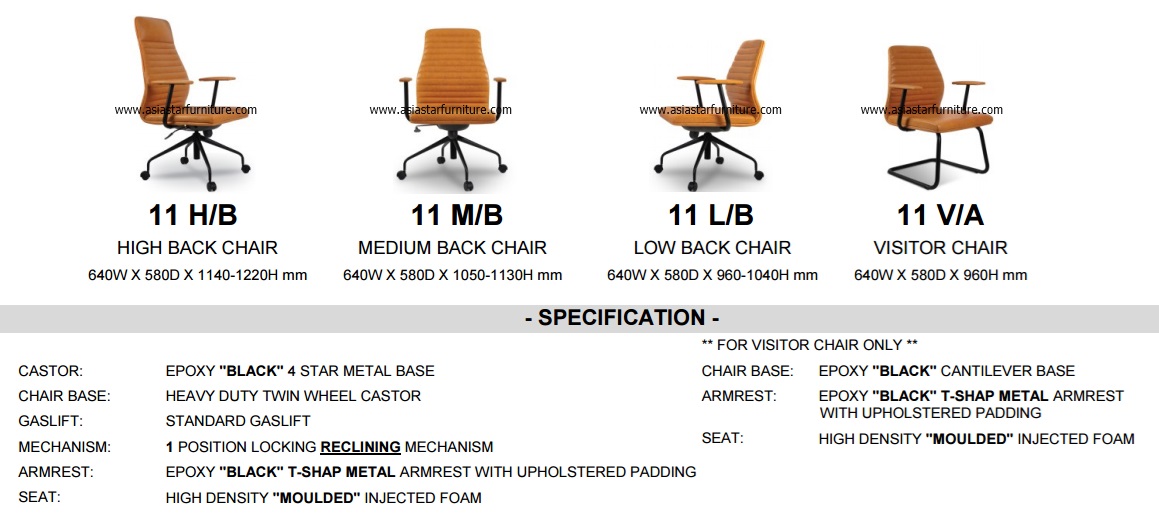 | CLASSICOR 11 HB | 640W X 580D X 1140-1220H mm | Executive, CEO |