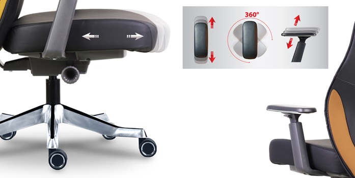 ARMREST | : | 3D (HEIGHT, PAD DEPTH & SWIVEL) ADJUSTABLE ARMREST WITH 360° PU ARMPAD |