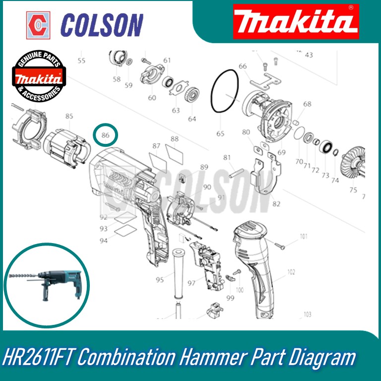 MAKITA 451535-8 HR2611FT Combination Hammer Motor Housing