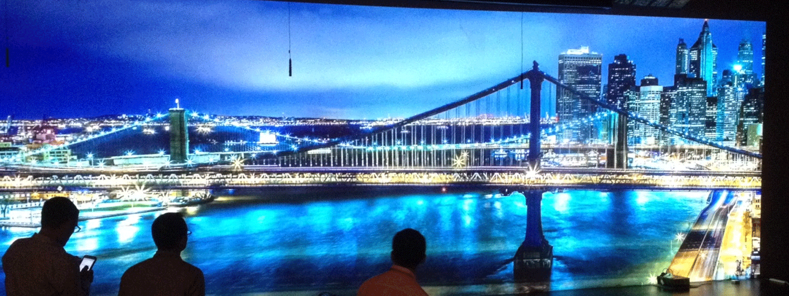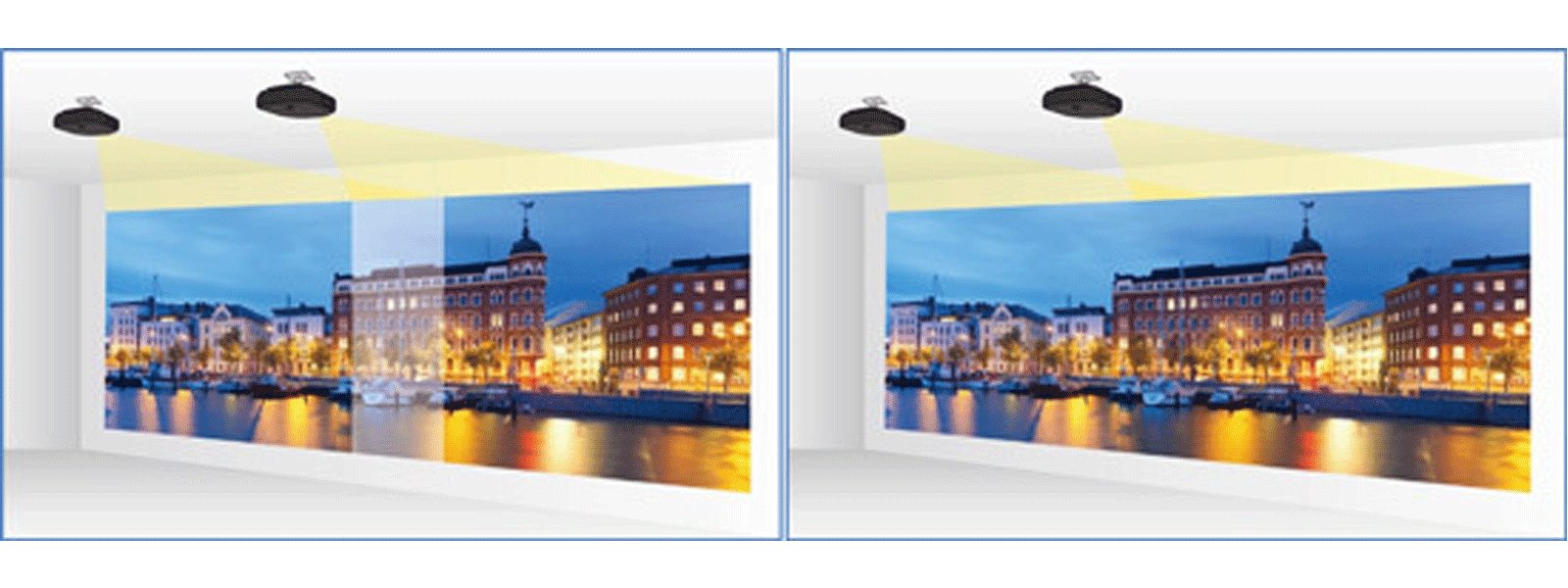 Involves 2 or more projectors to create a single large image. The overlapped edges are perfectly blended to create one seamless image.