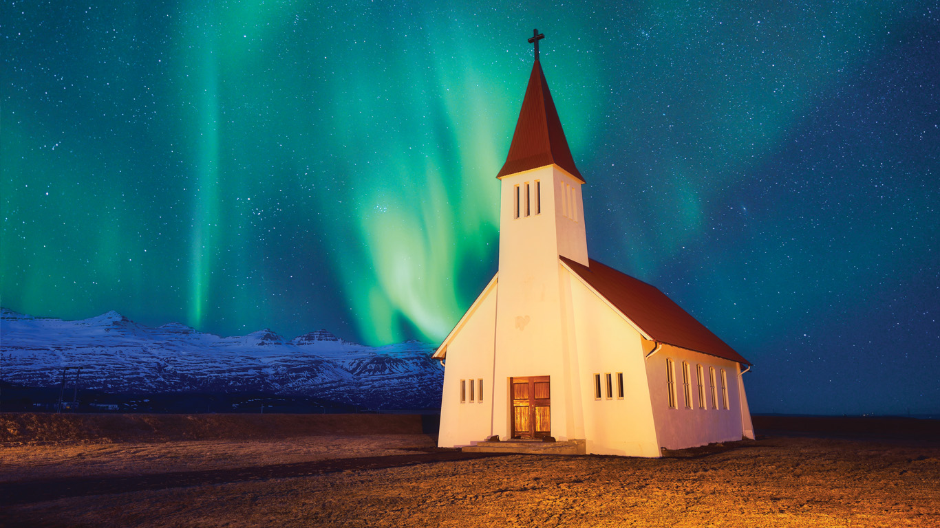Under the shimmering waves of the Aurora Borealis, Iceland reveals its tranquil soul — a place where faith and nature meet in breathtaking harmony