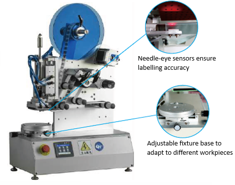 - Uses a suction system for stable labeling