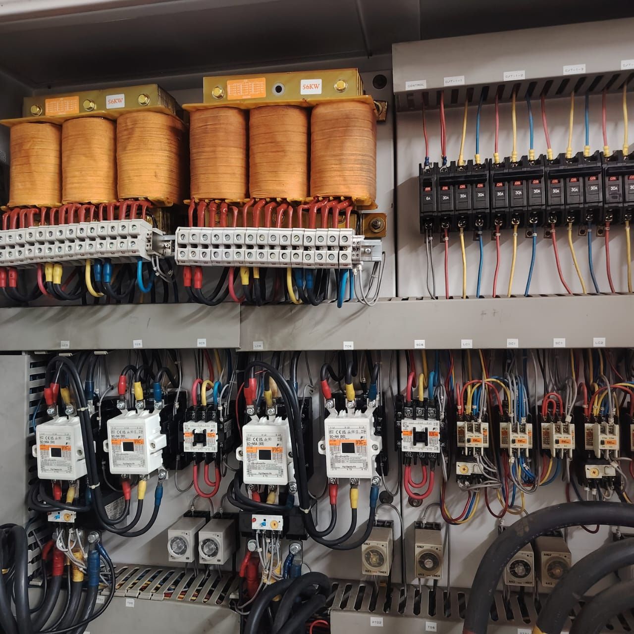 Transformers (56kW): We swapped out the heavy-duty transformers (shown in the 56kW section) to ensure stable voltage regulation across the entire control circuit.