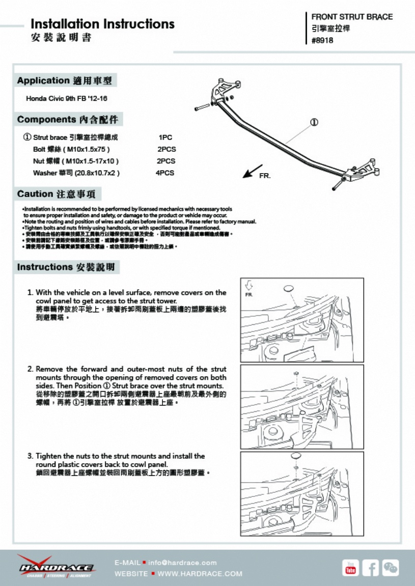 Kuala Lumpur (KL),Pandan Indah - HARDRACE FRONT STRUT BRACE for Civic FB 2012-2016