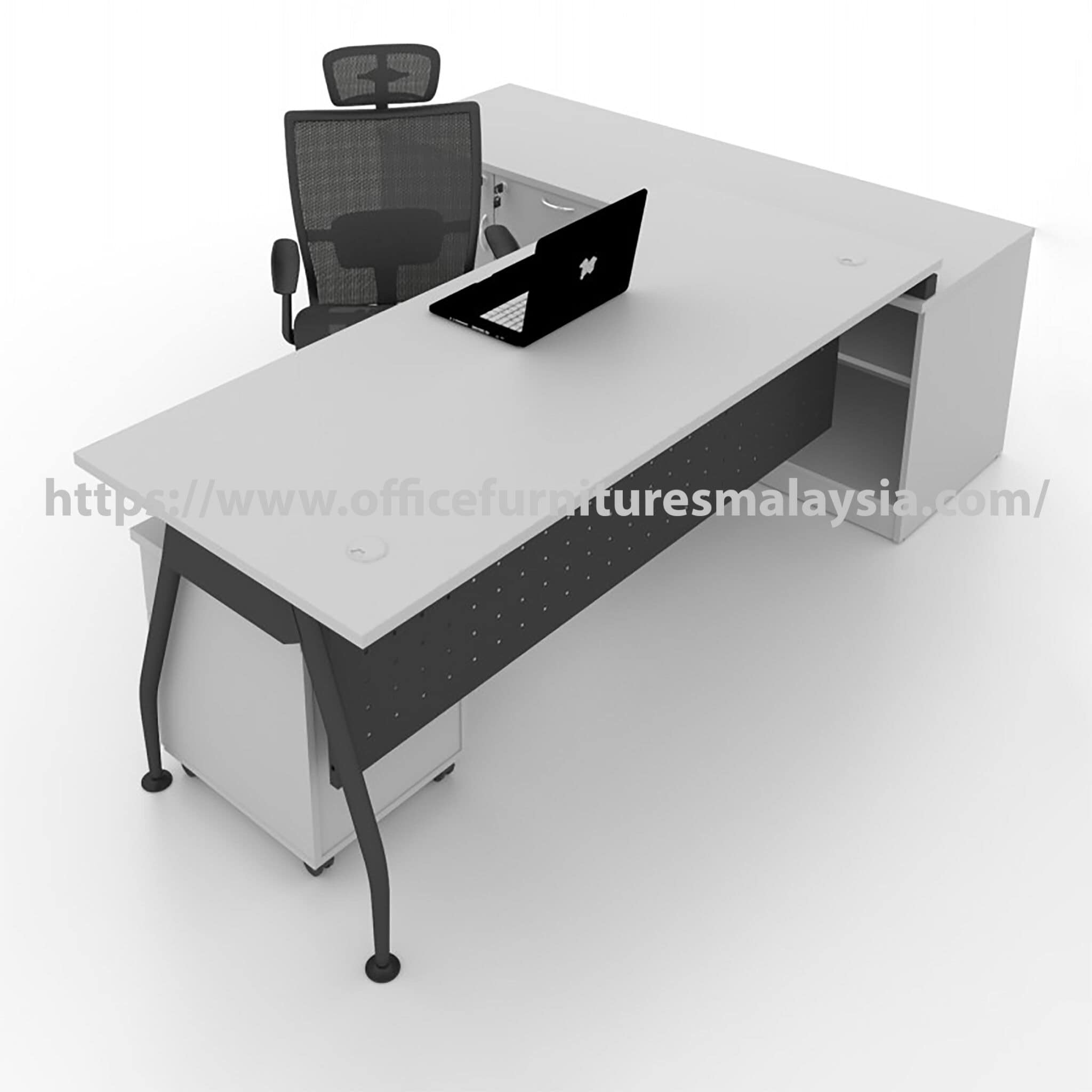 - Director CEO Table Comes With A Side Cabinet, Powder-Coated Metal Legs, And A Three-Drawer Mobile Pedestal