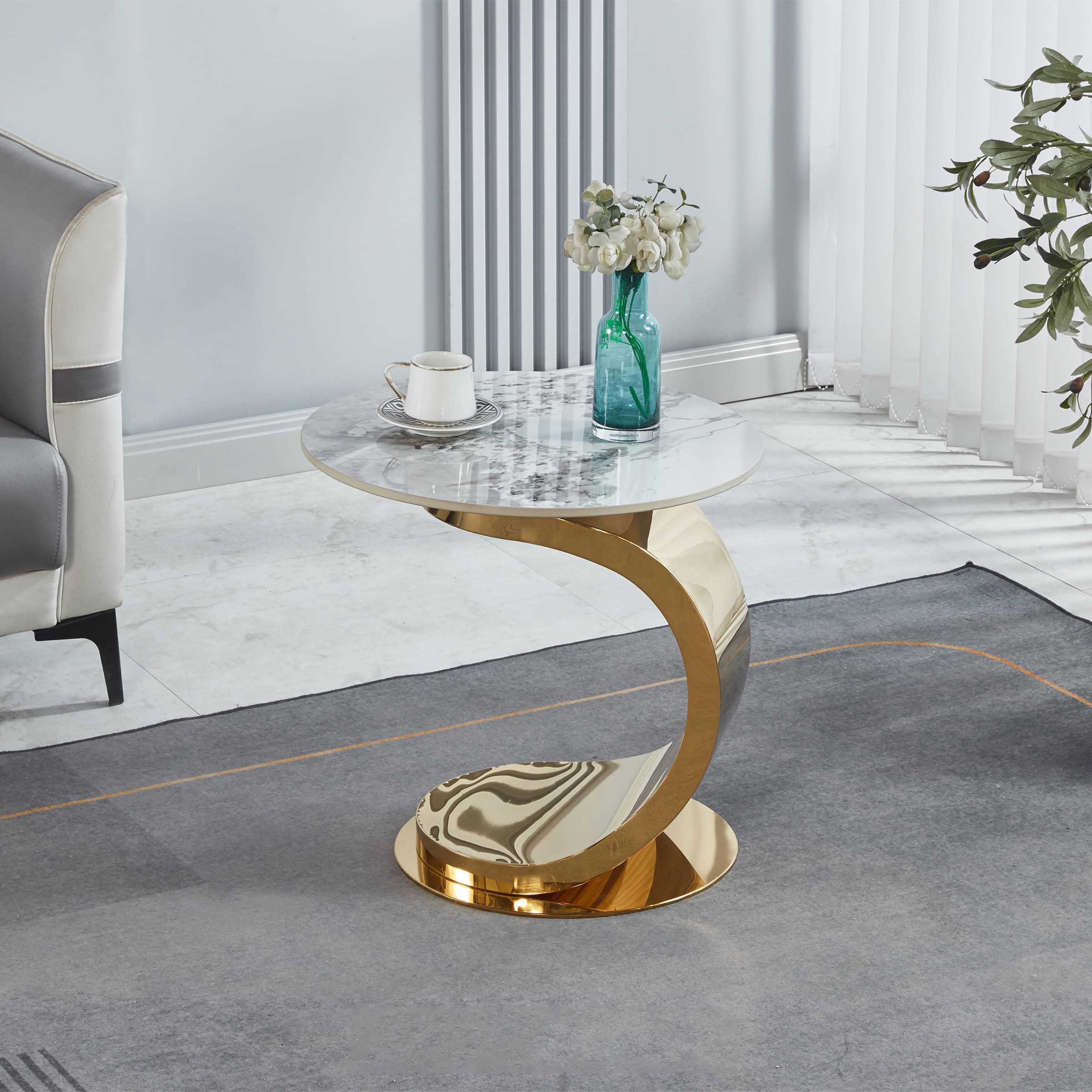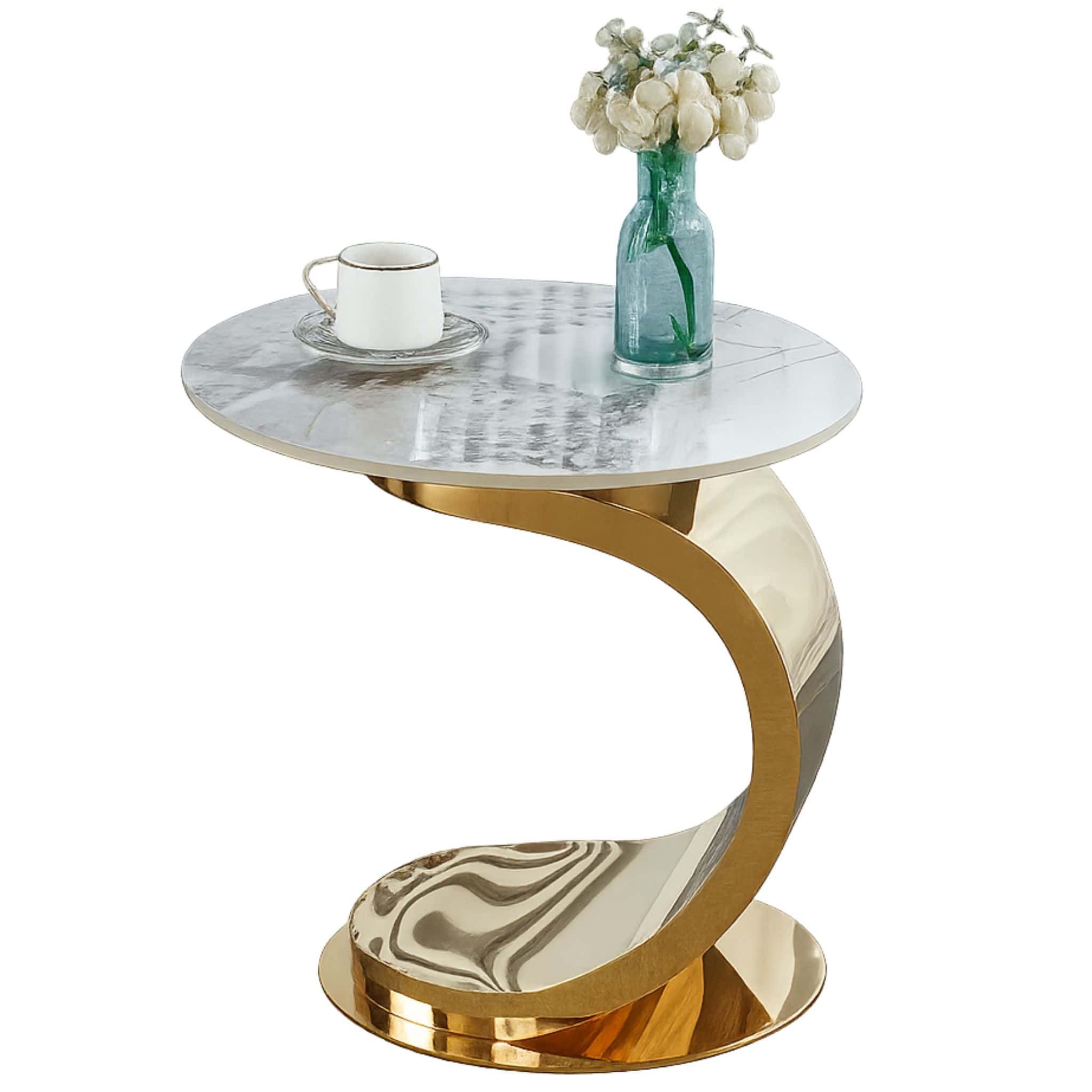 - Features A Modern Golden Stainless Steel C-Shaped Base For A Bold, Stylish Look