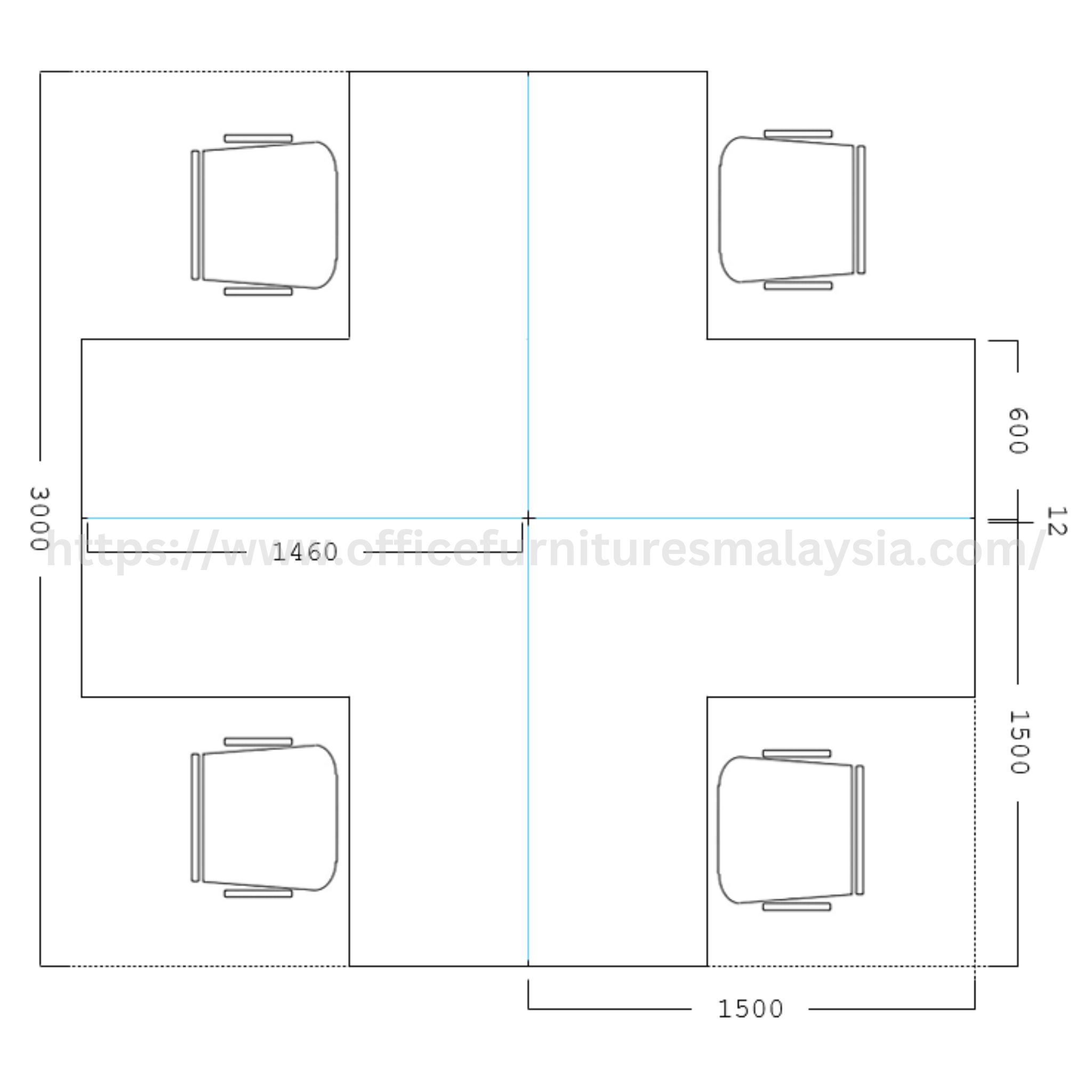 • 4 x L Shape Writing Table Size : W 1500/600 mm x D 1500/600 mm x H 750 mm