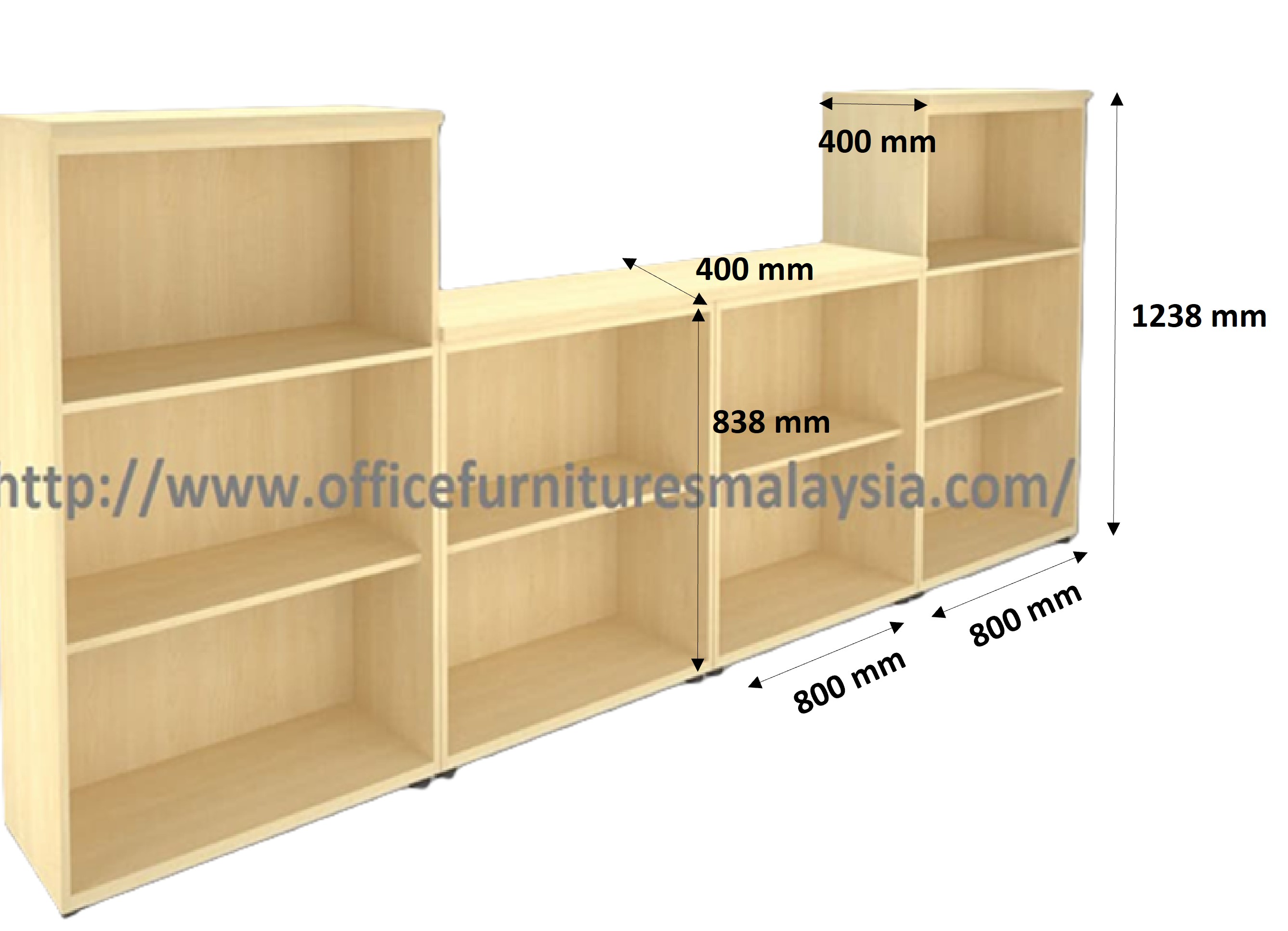 2 Units x Medium Height Open Shelf Cabinet: W 800 mm x D 400 mm x H 1238 mm