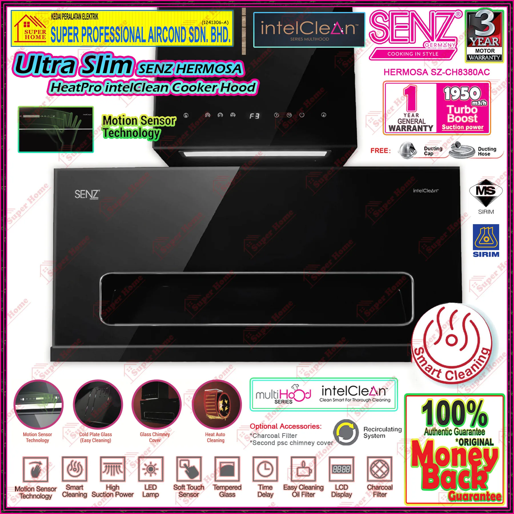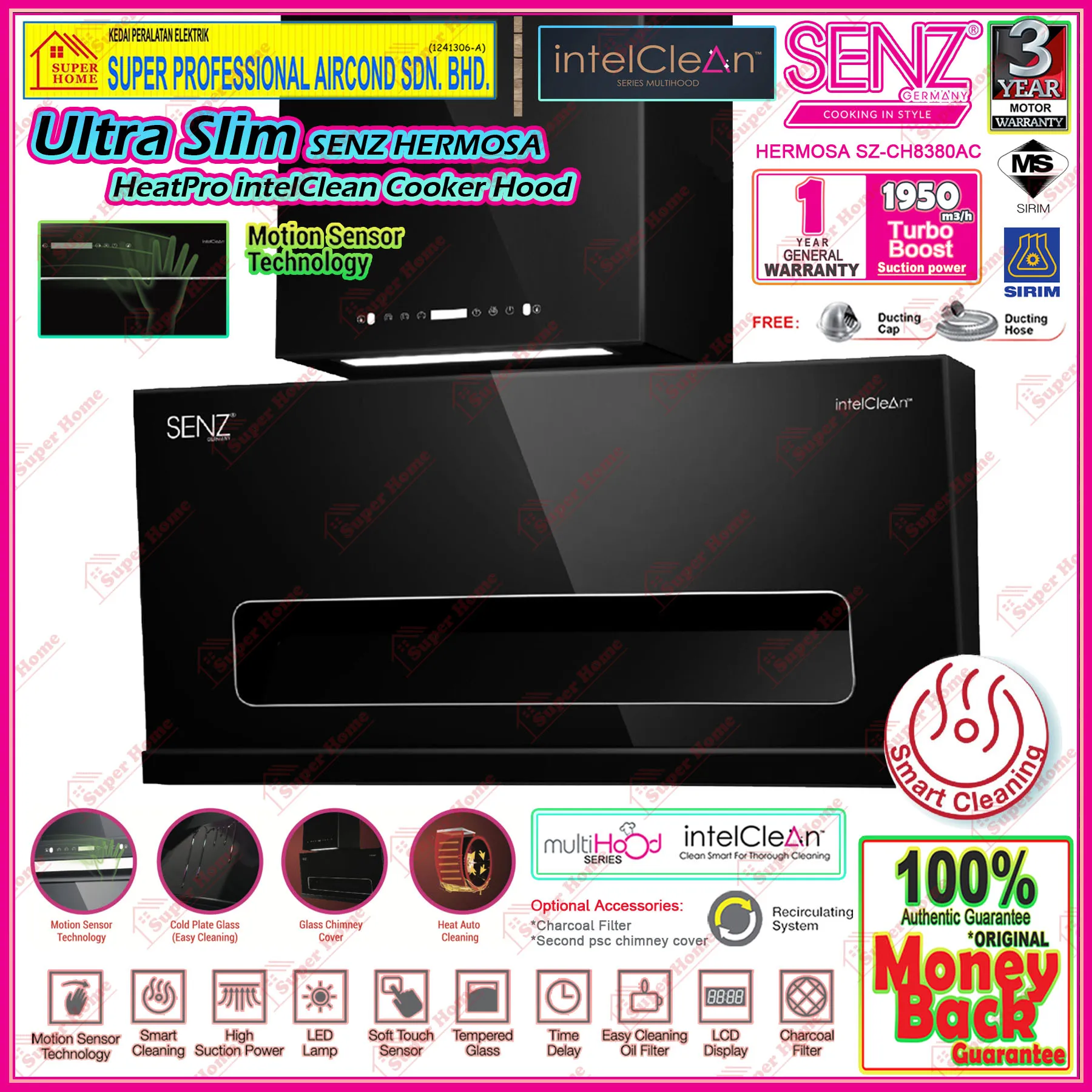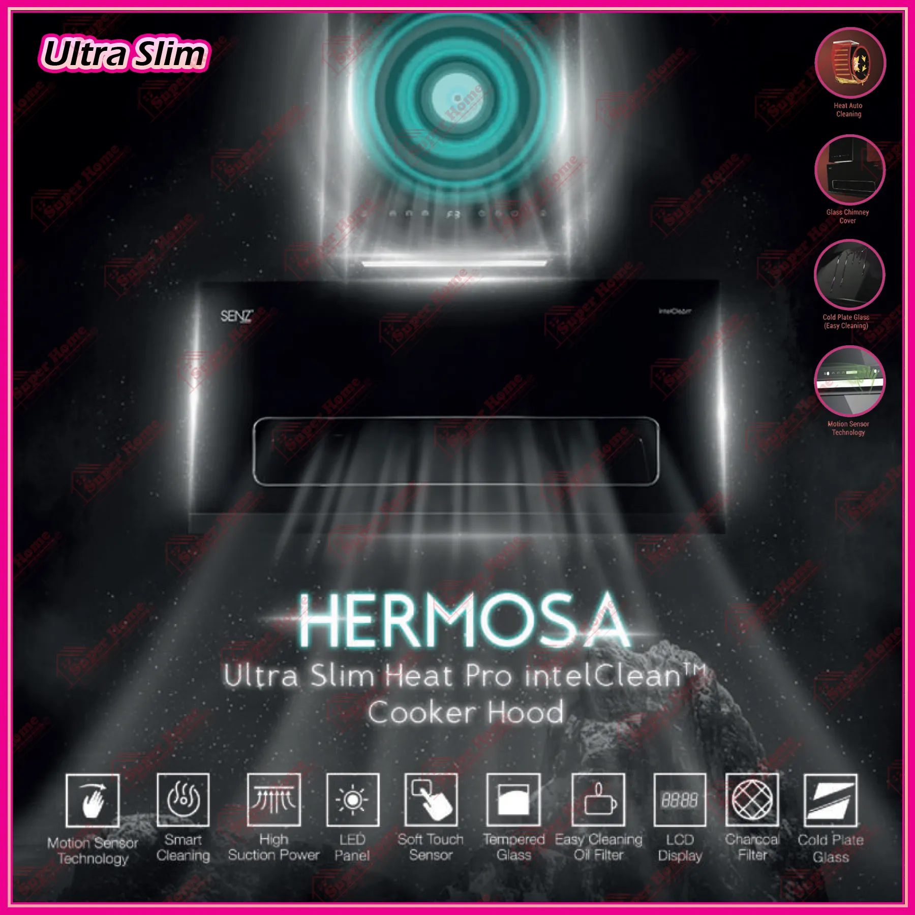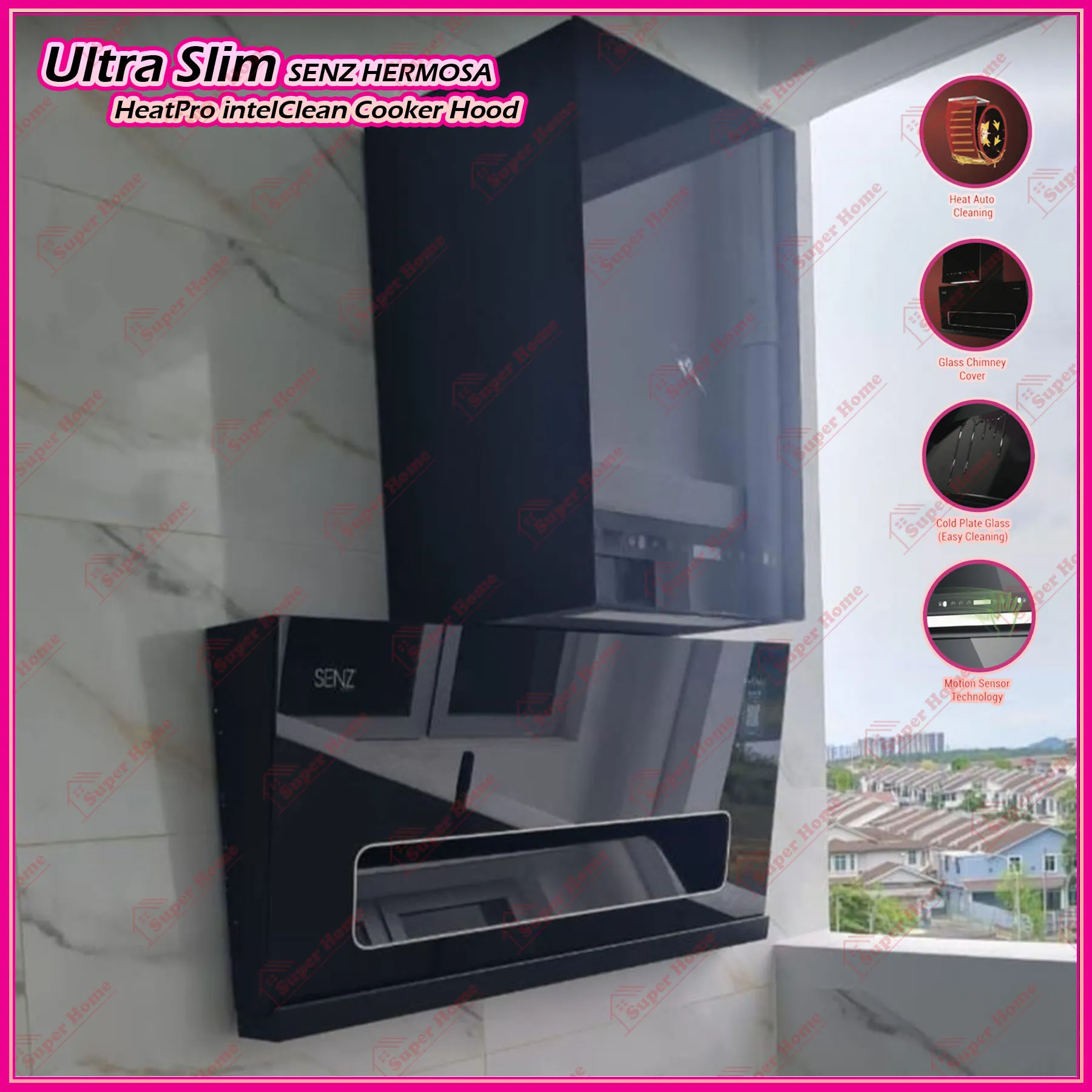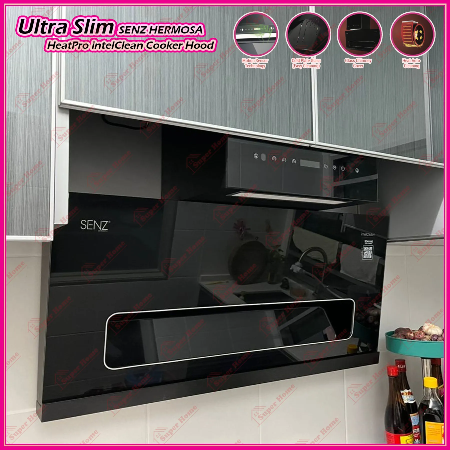 1 set x SENZ Kitchen Hood HERMOSA SZ-CH8380AC Ultra Slim Heat Pro intelClean Cooker Hood Motion Sensor Technology