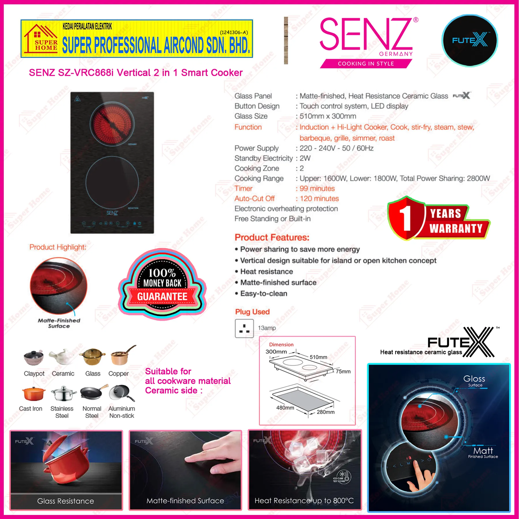 Selangor,Kuala Lumpur (KL),Petaling Jaya - SENZ Electric Hob SZ-VRC868i Vertical 2 in 1 Smart Cooker ((Free Standing or Built-in)) Domino Hob