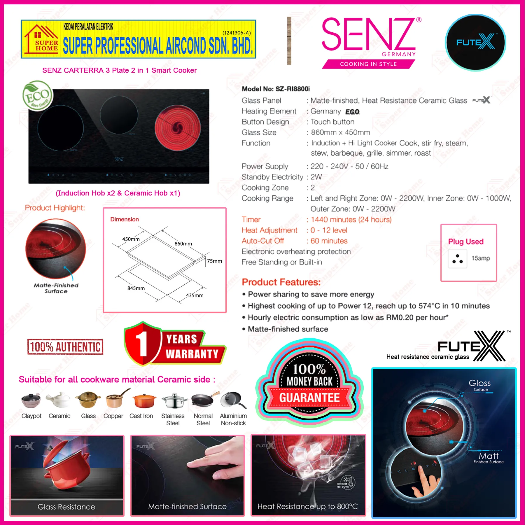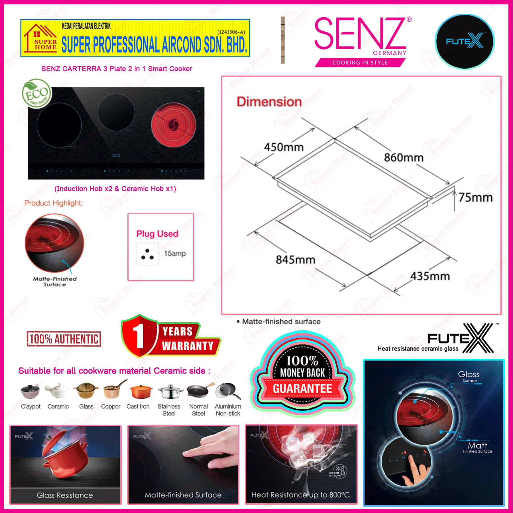 - 3 Plate 2 in 1 Smart Cooker(Induction X2 & Ceramic X1)
