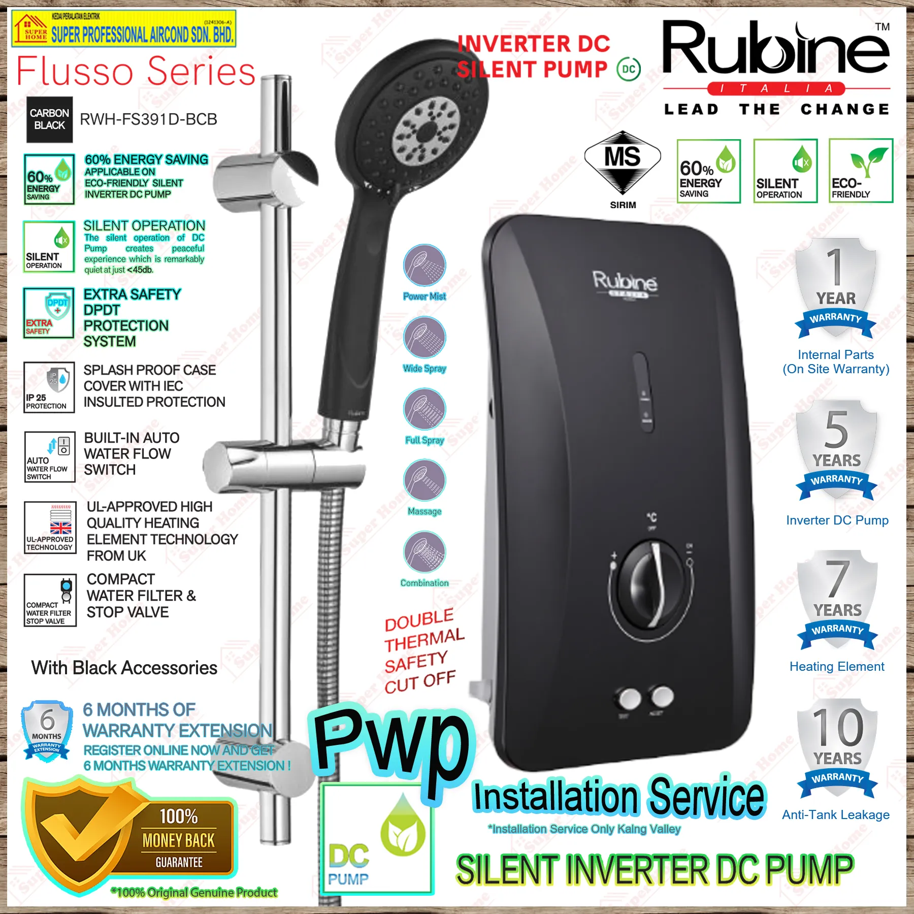 Selangor,Kuala Lumpur (KL),Petaling Jaya - Rubine Water Heater RWH-FS391D-BCB ((Carbon Black)) DC Inverter Silent Booster Pump Instant Water Heater ((DC Pump)) Flusso Series