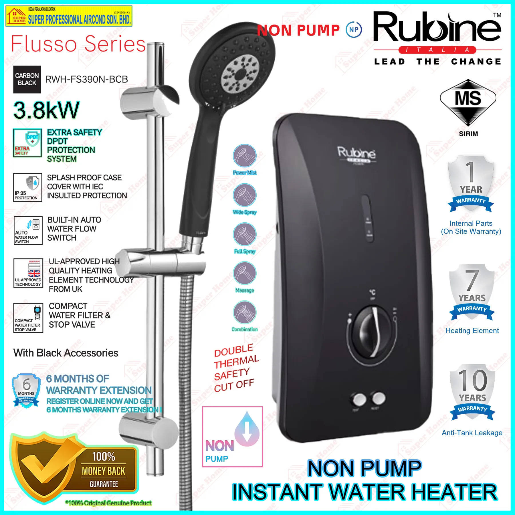 Selangor,Kuala Lumpur (KL),Petaling Jaya - Rubine Water Heater RWH-FS390N-BCB (Carbon Black) Non Pump Instant Water Heater - Flusso Series