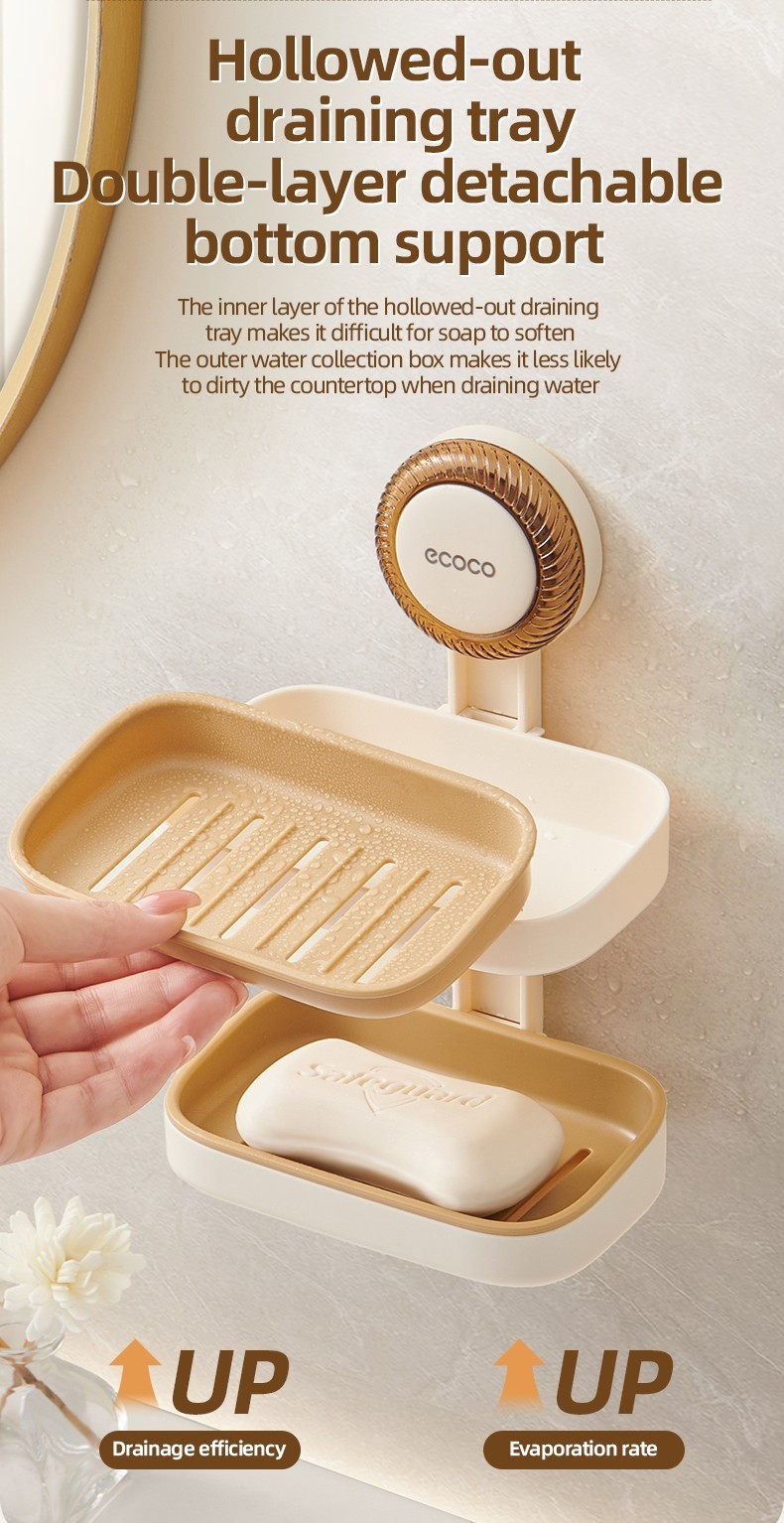 Upgrade your bathroom with the ECOCO Rotary Suction Cup Soap Box, designed for clean, dry, and hygienic soap storage. Featuring a powerful suction system, double-layer drainage, and 99.9% antibacterial material, this soap holder keeps your space neat and your soap lasting longer. Perfect for bathrooms, showers, toilets, kitchens, and more.