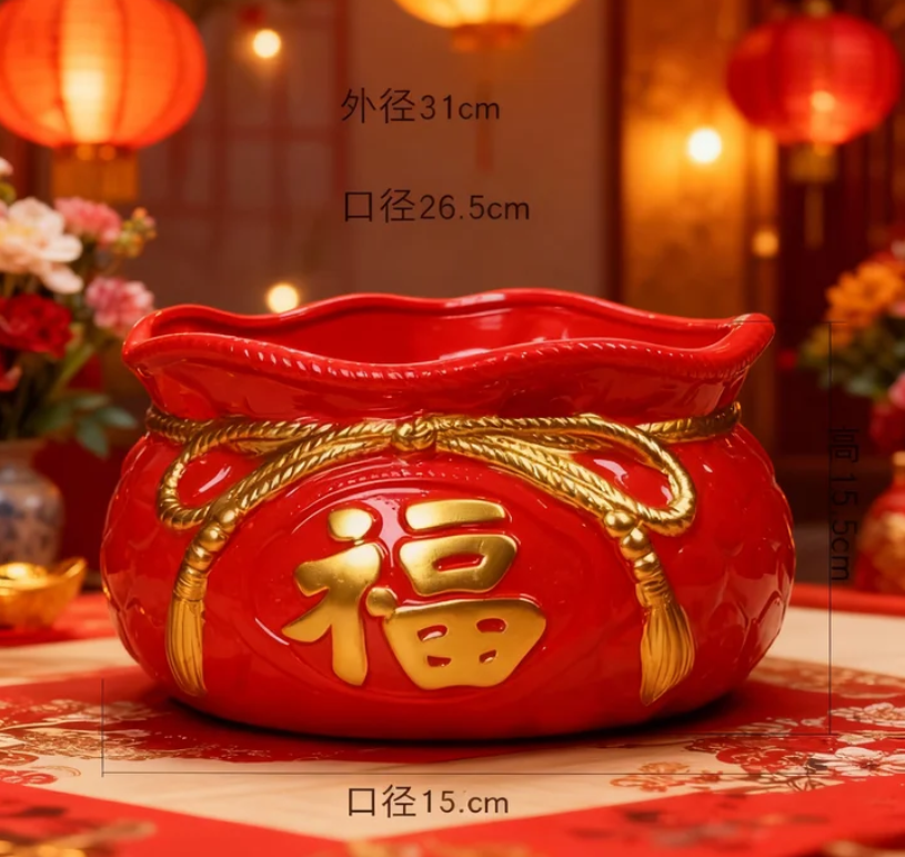Lucky Ceramic Flower Pot PC1247-10709 Chinese Red Festive Smooth Sailing Red Fubu Bag Extra Large Diameter Ceramic Money Tree Flower Pot Monstera Coconut Tree Pot  中国红喜庆陶瓷花盆 一帆风顺福袋特大号花器 适合招财树龟背竹椰子树 Lucky Ceramic Flower Pot PC1247-10709 Chinese Red Festive Smooth Sailing Red Fubu Bag Extra Large Diameter Ceramic Money Tree Flower Pot Monstera Coconut Tree Pot  中国红喜庆陶瓷花盆 一帆风顺福袋特大号花器 适合招财树龟背竹椰子树