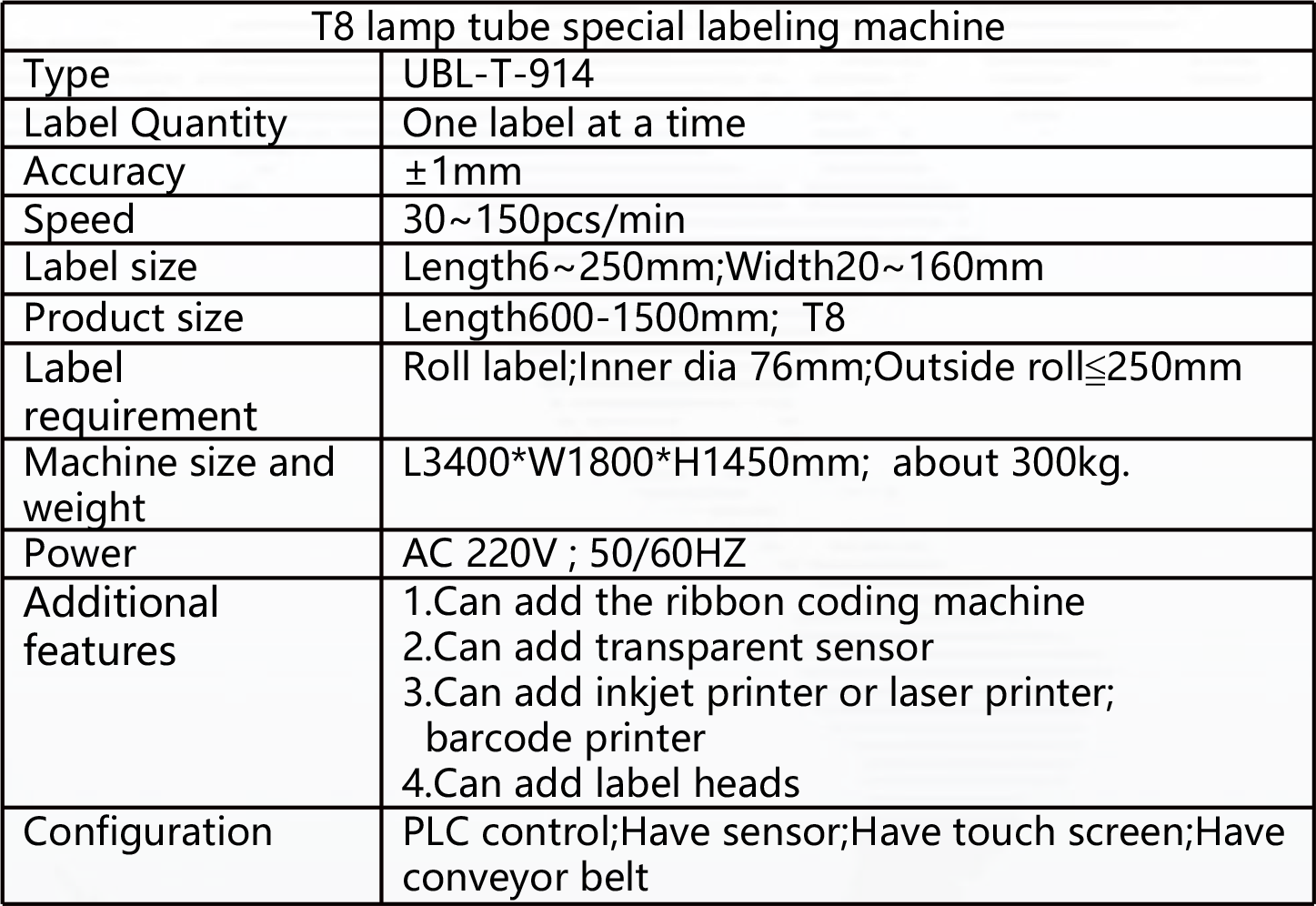 Function Introduction: A labeling machine specially designed for labeling T8 lamps. Can be used stand-alone or connected to the production line.